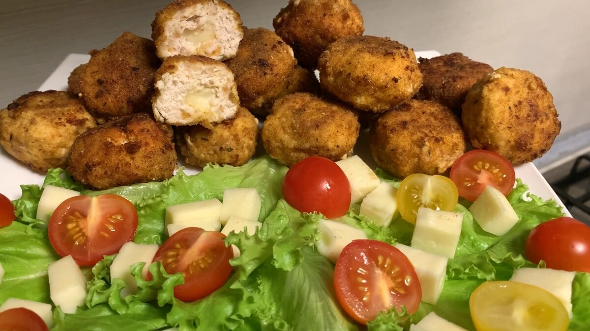 - Нежные и сочные в хрустящей панировке тает во рту! Я люблю куриные наггетсы за их простоту в приготовлении и отменный вкус! Сыр моцареллу можно заменить ветчиной или смесью зелени со сливочным маслом. Куриным наггетсам подаем любой гарнир. В данном случае это свежие овощи и сыр моцарелла. Приготовьте любой соус и наслаждайтесь вкусными наггетсами с хрустящей корочкой.