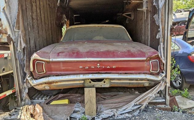 Этот Pontiac Tempest модель 1966 года в течение 5 десятилетий хранился в закрытом контейнере. С виду он потрепан жизнью и местами видна ржавчина, но зато у него доступная цена и даже есть небольшой сюрприз, скрывающийся под капотом. Автомобиль появился на доске объявлений в городке в Роули, штат Массачусетс, США. Деревянный брусок дополняет образ и поддерживает бампер в своем естественном состоянии и положении) Настоящий маскл-кар, который в свои лучшие годы выглядел непревзойденно и заставлял оборачиваться вслед! Что меня поражало в американском автомобильном рынке, что на базе этой модели производили 6 различных кузовов: Выглядел сумашедше с любым количеством дверей! Модель интересна тем, что на смену 4-цилиндровому двигателю пришел 6-цилиндровый, хоть американцы всегда любили большие моторы, стоило придти нефтяному кризису, как сразу стали клепать 2-литровые моторы. Двигатель объемом 3.8 литра выдавал 140 лошадок. Здесь также стали впервые использовать ремень вместо цепи, что было