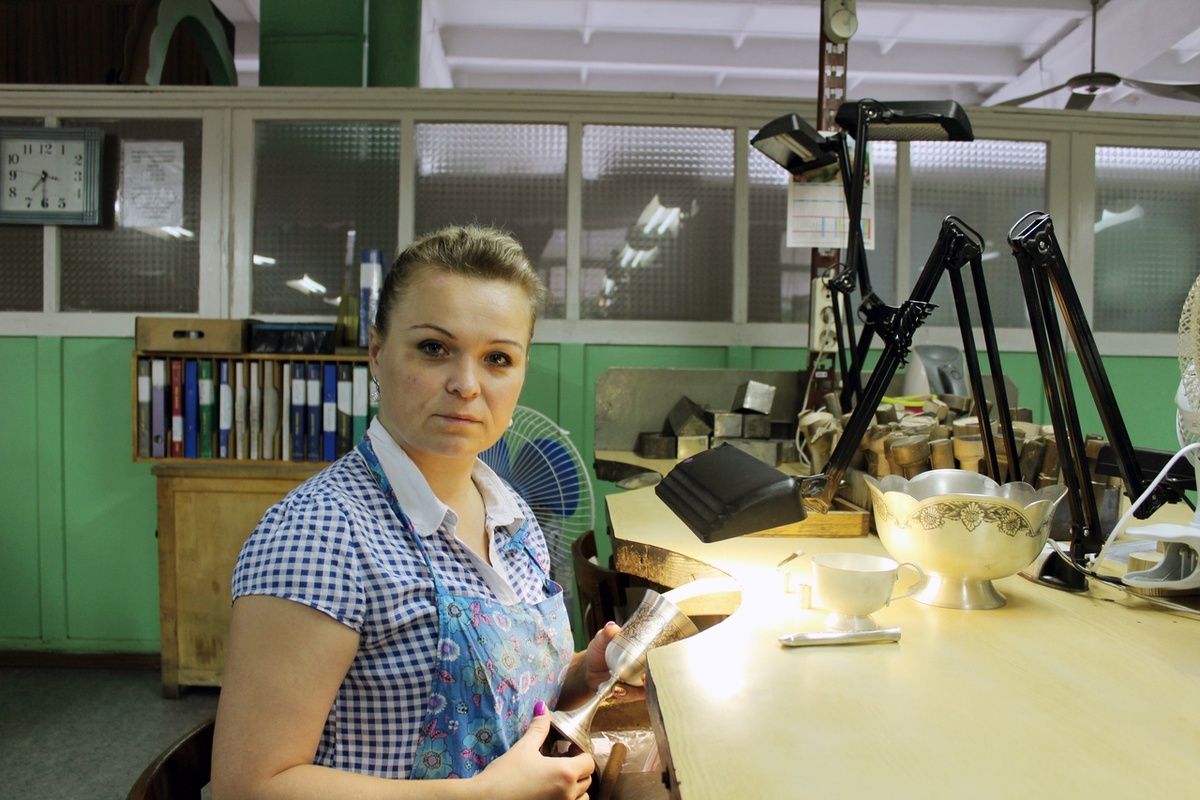 Ольга трудится на предприятии уже почти 19 лет. Постепенно она освоила все тонкости мастерства гравера по серебру. Сегодня Ольга Сергеевна может создавать различные, в том числе сложные эксклюзивные изделия.