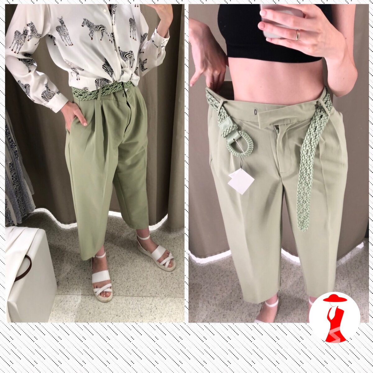 Люблю Зару и их новую коллекцию, но боль моего шоппинга здесь – неподходящие размеры низов. Рост в 175 см иногда мешает выбрать брюки надлежащей длины и платья, но кое-что я всё-таки присмотрела. Пойдем со мной? 1️⃣ Атласная рубашка К белой базовой рубашке уже все привыкли, да и летом хочется чего-то более яркого. Не столько зацепила рубашка, как зебры на ней. Отличный не вызывающий акцент в вашем летнем образе. Также решила примерить с моими белыми брюками из Stradivarius. В итоге получился почти total white look😉 Цена рубашки 2499 рублей. Представлена ещё в зелёном цвете. На сайте выглядит вот так: 2️⃣ Брюки фисташкового цвета Оттенок брюк сразу привлек мое внимание. Выбрав привычный для меня размер S, я направилась в примерочную, где меня ждал сюрприз. Такого я не ожидала😂 несмотря на это, затянула поясом и всё-таки решила посмотреть их в ансамбле с другими вещами. Первый образ с моим топом из Ostin. Колорблок сейчас как никогда актуален, потому может носить даже так. Второй обр