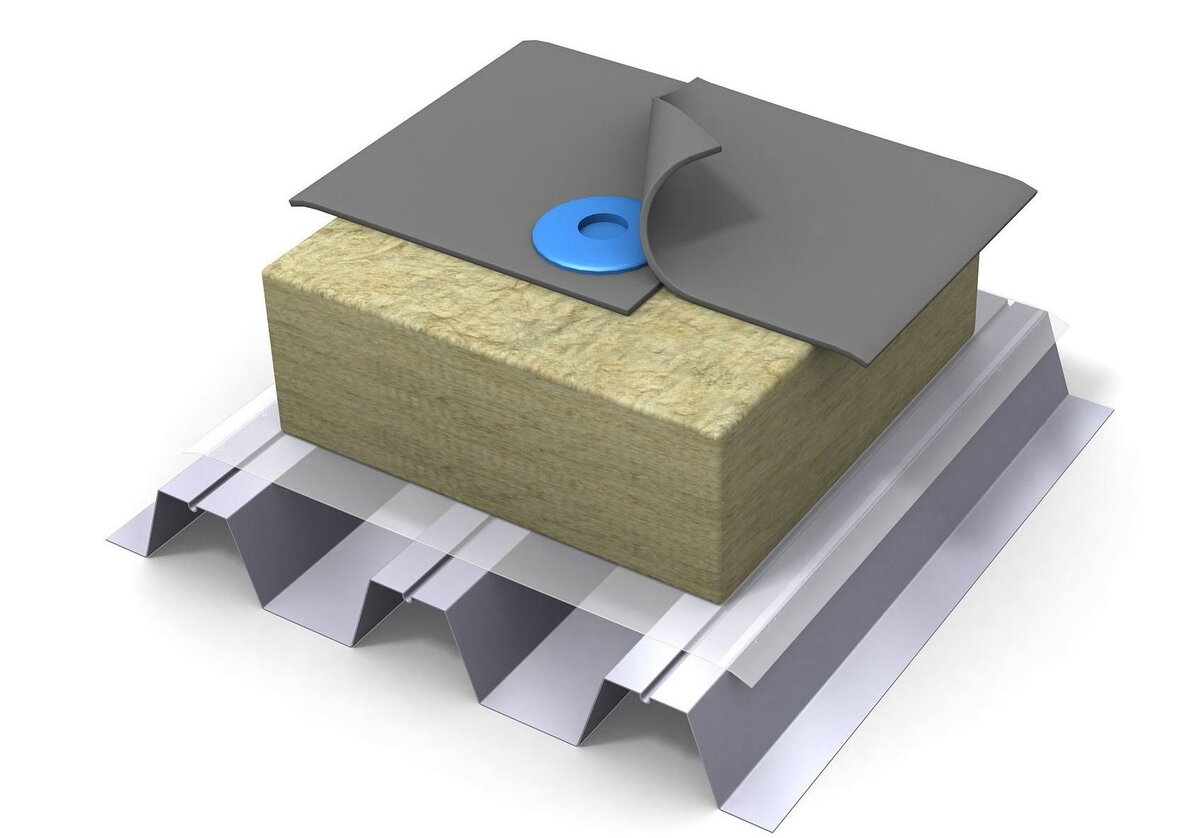 Основной задачей теплоизоляционного слоя является защита здания от потерь тепла в холодный период, и соответственно, от перегрева – в период с высокими температурами наружного воздуха. Также следует отметить, что слой утеплителя практически всегда выполняет еще и функцию звукоизолятора, а в определенных случаях выступает уклонообразующим слоем. Толщина утеплителя выбирается, исходя из данных относительно несложного теплотехнического расчета. Крупные компании-поставщики утеплителя предлагают выполнить такой расчет прямо на сайте. Наибольшее распространение на российском кровельном рынке получили утеплители из минеральной ваты, пенопласта (пенополистирола) и экструдированного пенополистирола. Также применяются утеплители из пеностекла, вспененного полиэтилена и напыляемого пенополиуретана.
