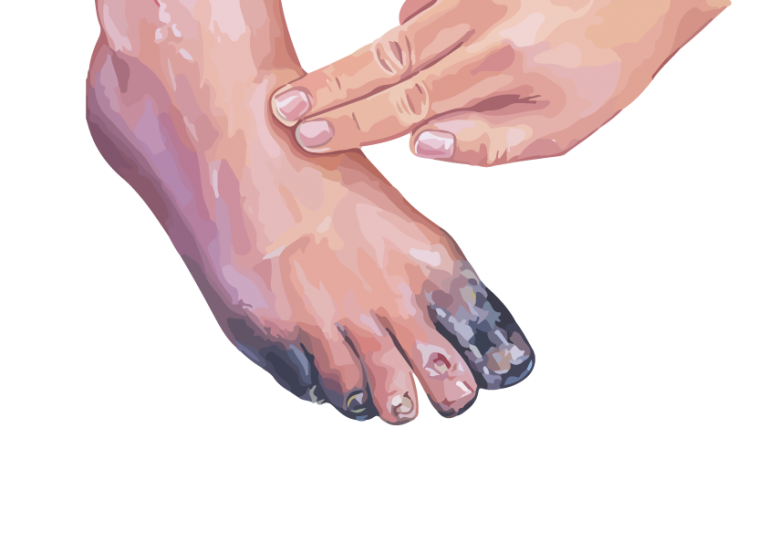 Гангрена - это тип отмирания ткани, который происходит из-за нарушения кровоснабжения. Гангрена может развиваться в любой части тела, но обычно затрагивает периферические части конечностей, такие как ступни, пальцы ног, пальцы, руки, пенис и т.д.