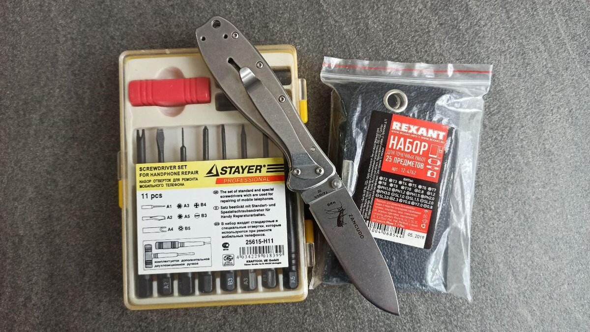 Набор Stayer у меня давно в использовании, предназначен он для разборки мобильного телефона. Однако запаса прочности хватает и для разборки