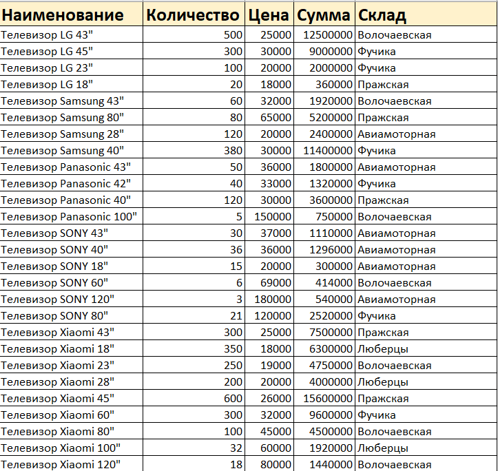 Представим следующую картину - у нас есть несколько одинаковых файлов Excel (продажи по месяцам телевизоров).