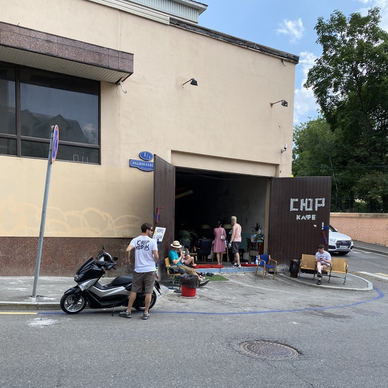 Жаркий летний день давил лучами солнца и духотой. Подкопаевский переулок убегал по кривой вниз. На первом этаже обшарпанного желтого здания старой постройки с облупившейся краской свои створки распахнули коричневые железные ворота. Рядом стояли мебель из советского прошлого, мопед, молодой человек в футболке «Супер Козлы» и пара студентов в тапочках. Это был «Сюр», новый проект, который выглядит и ощущается так, буто его создавали мыслями студенчества авангардного толка.