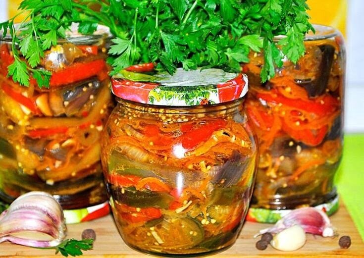 Тетя Ира является неким Наполеоном черешков-корешков. Ее громадный огород всегда отличался армейской идеальностью и вылизанностью, парники размером с ангар для Боинга были натянуты без малейшей складочки, а клумбы выполоты так, что у меня создавалось впечатление, что для этой работы использовался маникюрный пинцет. Подвал, размерам которого позавидовали бы НАТОвские бункеры, к осени забивался бочками, ящиками, банками и мешками. Я по умолчанию обязывался вывозит все это добро в город и часть стратегического запаса перекочевывала в нашу с Машей квартиру. Помимо банальных соленых огурцов тетя Ира делала блестящие заготовки и некоторые я прекрасно помню. Баклажаны по-деревенски Кружочки баклажанов обжарить на масле с обеих сторон. Отдельно пожарить нашинкованную морковь, мелко рубленный лук и сладкий перец соломкой. Сложить все вместе в кастрюлю и добавив пюре из помидор или томат-пасту и растертый чеснок тушить полчаса. Переложить в пропаренные банки и закатать стерильными крышками. На