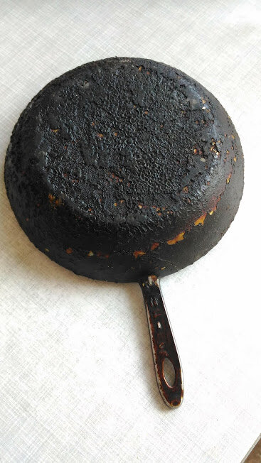 На самоизоляции решила провести эксперимент: раздобыла убитую сковородку и попробовала очистить ее от нагара нашатырным спиртом. Было вот так: Пришлось три раза заливать ее нашатырным спиртом, заворачивать в два полиэтиленовых пакета и выдерживать в проветриваемом месте. Выдерживала каждый раз по двое суток и отчищала очередной слой нагара. Вот результат: В целом этот способ очистки работает, но приходится скоблить. #нагар сковорода нашатырный спирт очистка