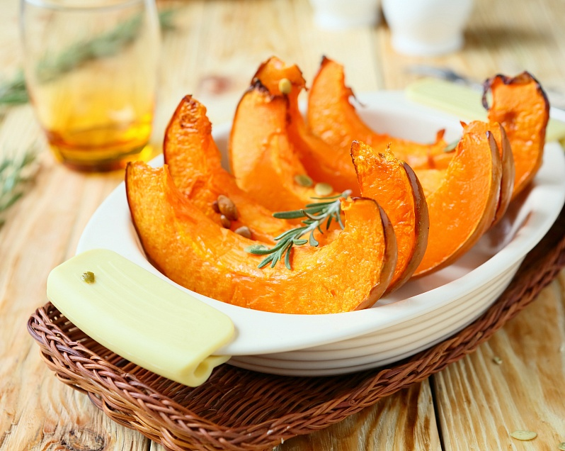 Смажьте тыкву соусом. Готовьте в режиме «Комбинированный» 5 мин. Дайте «отдохнуть» 2 мин., после чего готовьте еще 5 мин. Затем выберите режим «Гриль» и готовьте 20 мин. Дайте немного остыть и подавайте.