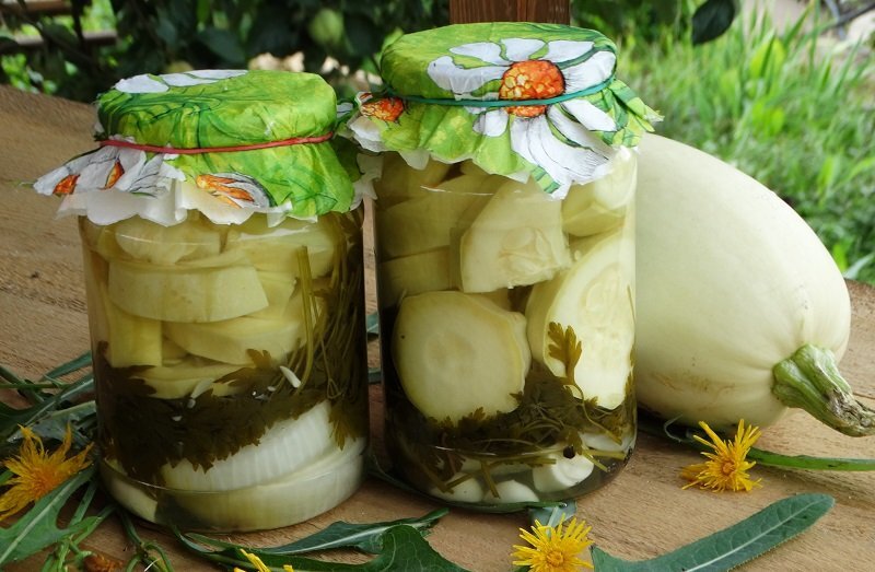 6. Тут же заливаем кабачки в банках горячим маринадом и закатываем крышкой.