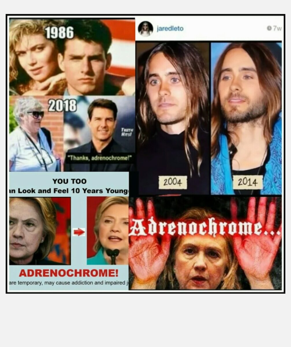 Все мы любим голливудские фильмы, и часто удивляемся тому, как выглядят наши любимые актеры, время идет, мы стареем, а наши кумиры с экранов как будто застыли во времени и не стареют, а некоторые и вовсе с годами становятся все моложе. В чем же их секрет, в образе жизни, в пластических операциях или все дело в запрещенных для нас веществах? Мировую элиту, т.е. и богатейших бизнесменов, и имеющих вес политиков, и наших любимых голливудских актеров и музыкантов начали обвинять в шокирующих преступлениях. А именно, в употреблении ''адренохрома'', а значит и попутно в педофилии и ужасных сатанистских ритуалах с жертвоприношениями детей. Ведь по распространяющейся по сети информации адренохром можно получить только одним путем, из шишковидной железы досмерти испуганного ребенка. А само вещество вызывает сверхсильное привыкание и самое главное дарует вечную молодость если постоянно употреблять его. Так вот почему листовки о пропаже детей с каждым годом все больше и больше. Или нет? Но давай