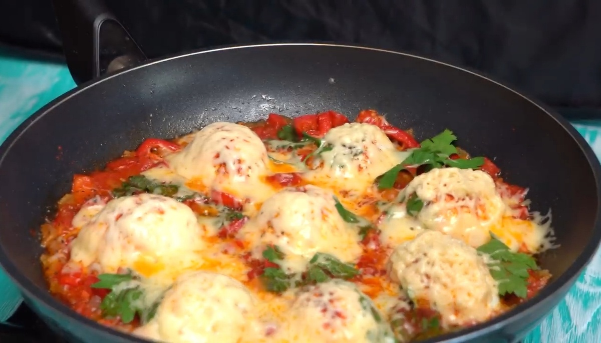 Турецкий завтрак Яйца – 4 шт. Сладкий перец – 90 гр. Лук – 75 гр. Помидоры – 220 гр. Сыр – 100 гр. Петрушка – 1-2 веточки Соль – 1/3 ч.л. Перец – 1/3 ч.д. Паприка – 1 ч.л. Сливочное масло – 30 гр. Растительное масло – 20 мл. Для начала отварите вкрутую яйца. Сильно долго варить не надо, 7 минут достаточно. За это время подготовьте овощи. Лук мелко порежьте. Помидоры также порежьте кубиками. Также нужно нарезать красный сладкий перец. Сыр натрите на мелкой терке. Очистите яйца и разрежьте их пополам. В большую сковороду налейте 20 мл. растительного масла. Добавьте 30 гр. сливочного масла. Нагрейте хорошенько. Первом делом обжарьте лук до прозрачности. Затем добавьте сладкий перец и помидоры. Обжарьте недолго. Теперь выложите поверх яйца срезом вниз. Рядом уложите зелень, у меня листья петрушки. Посолите, добавьте черный перец также сверху посыпьте паприку. Осталось только выложить сыр. Кладите его только на яйца. Закройте крышкой и держите на слабом огне пока сыр не растает.