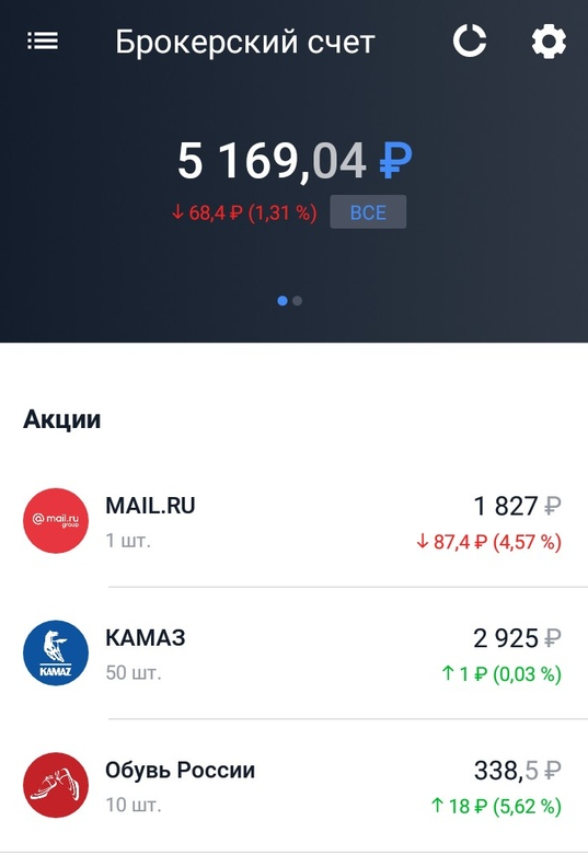 На этой неделе я добавил в портфель тысячу рублей и теперь общая сумма вложений составляет 5400 рублей. Также еще одна тысяча отправляется в подушку безопасности, чтобы в случае мелких жизненных неурядиц мне не пришлось сносить этот счет и фиксировать убытки. Итого, в подушке у нас уже 2 000 рублей.