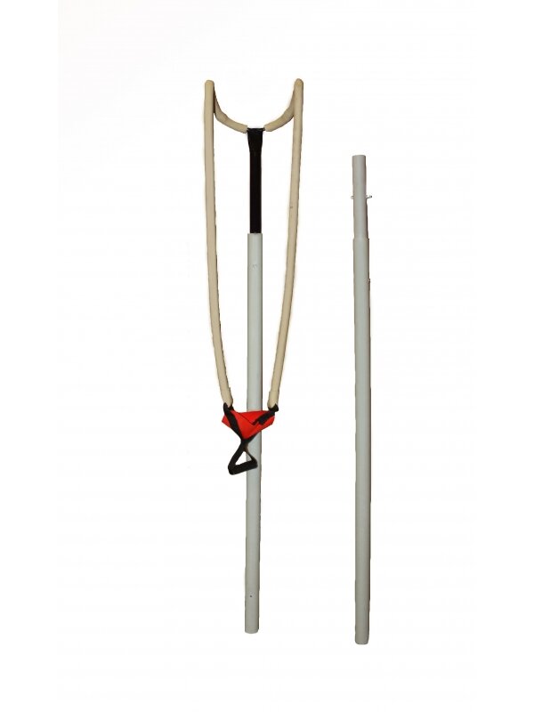 Большая рогатка,предназначена для быстрого и простого способа перекинуть доп. страховочную верёвку. Существенно сокращает время подготовительных работ. Она позволяет закинуть верёвку на высоту до 40 метров с хорошей прицельной точностью. Стекловолоконная труба, высота рогатки в собранном состоянии 2,20 см ,разбирается на 2 части.