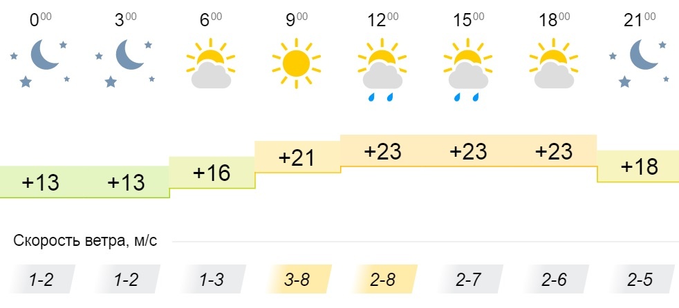 18 июля жителей Кировской области ожидает небольшой дождь. Воздух в субботу прогреется до +23°С. Утром и вечером — чуть прохладнее: +16…+18°С. Скорость ветра при этом не превысит 8 м/с. В районе 12 дня может начаться небольшой дождь.