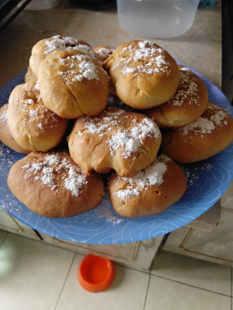 Достаем булочки, мажем их растительным маслом и посыпаем сахарной пудрой.