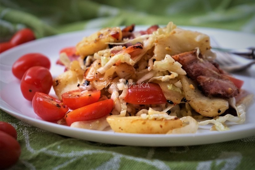 Теплые салаты - прекрасны! Нет лучшего способа накормить семью легким обедом, чем такие вот беспроигрышные варианты. Теплый салат с карамелизированными яблоками объединяет в себе такую гамму прекрасных вкусовых оттенков, что устоять и отказаться от него - невозможно. Нежные сладко-кислые яблоки, хрустящий обжаренный бекон, восхитительная свежесть салатных листьев - все вместе образовывается в