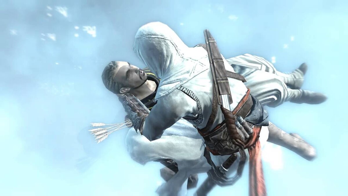 Не самая детская игра , но кто в 14-15 лет не хотел облачиться в белый копюшон и отправиться на истребление тамплиеров? Инновации После отказа от разработки очередного Принца Персии, Unisoft сохранив старые наработки и добавив нововведений, создали новый айпи, который знаменит и является одной самый продаваемых серий игр спустя 13 лет. Главная инновация заключалась в способе перемещения по уровням. Паркур в 2007-2008 набирал популярность в кино, поэтому в формате игры это выглядело очень свежо. Крутые анимации, возможность забраться на любую высоту дарили незабываемые впечатления. Боевая система тоже радовала своей зрелищностью и динамикой. По ходу сюжета главный герой Альтаир приобретал новые способности , превращая любую стычку со стражниками в смертельный танец . Социальный стелс Ещё один аспект игры, достойный внимания это стелс. Прятаться можно не только за стеной, но и в живой толпе. Облачение ассасинов легко смешивается с одеждой монахов и священнослужителей, и внедрившись в т