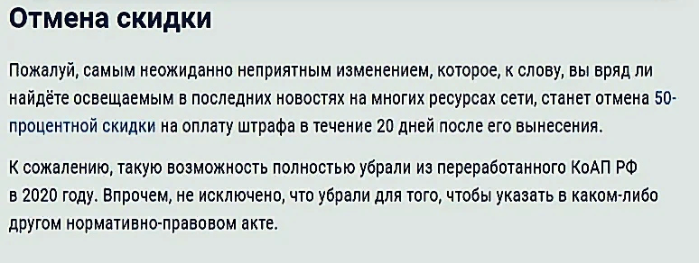 Автомобилистам привет! Кто сейчас только не знает об изменениях в КоАПе и Основном законе. Обсуждение всех деталей так затянулось, что уже порядком надоело. Но по воле судьбы я выслушивал это ещё раз, когда от скуки в пробке включил радио. Услышанное мне совершенно не понравилось и даже опечалило: с 20 июля всех водителей начнут штрафовать за отсутствие видеорегистратора в машине. Но главная новость ещё впереди. Самая жесть заключается в следующем - они отменят все скидки. То есть, все водители будут оплачивать полную стоимость штрафов. Я сначала даже не поверил. Но увидел на новостном сайте подтверждение. Ниже будет скрин, если не верите. В общем, с 20 июля всем автомобилистам надо установить видеорегистраторы. Если их не будет, то будут штрафовать на 3-5 тысяч. К сожалению, тут повторяется ситуация с масками: магазины сейчас сильно завышают цены на регистраторы. Стоять они стали как нечто роскошное и уникальное. Сам я штрафы получаю редко, поэтому ещё обиднее выплачивать их за от