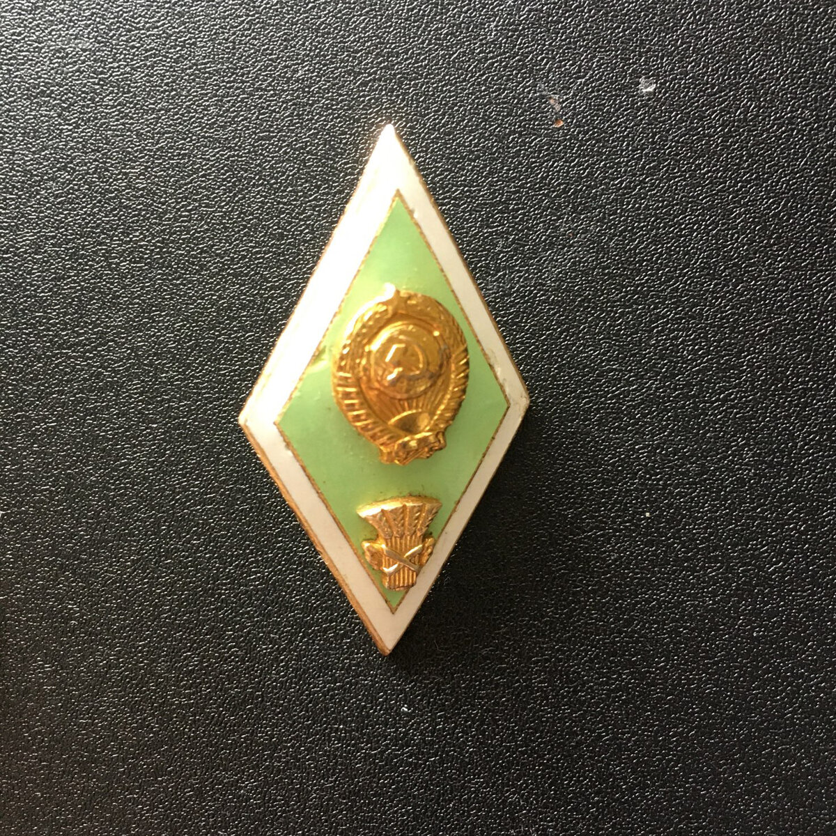 Смотрела недавно старый родительский фотоальбом и на многих фотографиях папа с мамой в загадочных значках в форме ромба. Вспомнила, что видела что-то похожее в ящичках в шкафу и принялась его искать. И нашла: Оказывается, эти значки бывают разных цветов и отличающимся рисунком в нижней части знака. В Советские времена такие значки назывались "вузовскими ромбами" или "поплавками". Что изображали на таких значках? Обязательно было герба СССР и эмблема и цвет эмали, указывающие на принадлежность учебного заведения. Например, зелёный, тот, что я нашла - сельскохозяйственная специализация. Синий - техническая Белый - военная Светло-голубой – гуманитарная Тёмно-голубой - юридическая Красный – медицинская А вручали их в обязательном порядке каждому выпускнику вместе с дипломом до 1991 года. А после академические значки перестали выпускать, но сейчас некоторые ВУЗы, техникумы и колледжы, оказывается, продолжают эту традицию, и самостоятельно заказывают изготовление значков об окончани