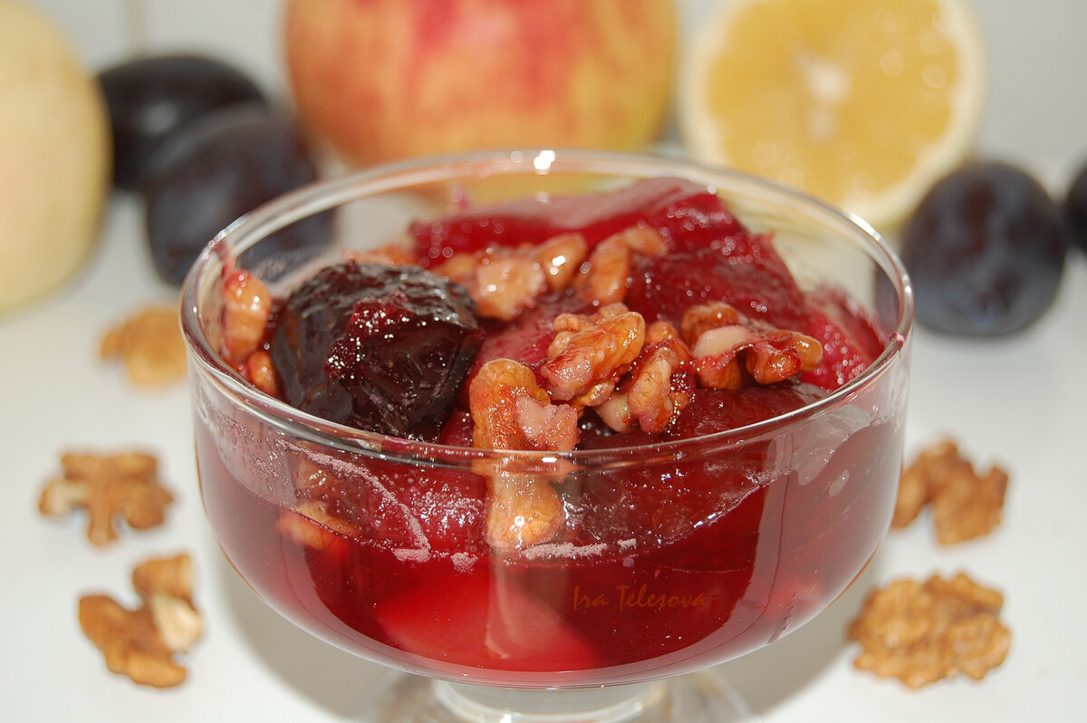 У меня были кислые яблоки и очень сладкие сливы. Количество сахара, мёда и лимонного сока нужно варьировать с учётом кислоты яблок и слив.