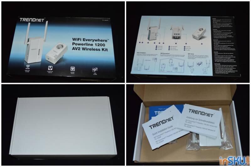 Есть проблема "последней мили", а иногда может нарисоваться и проблема "последнего метра". Под этой фразой я подразумеваю ситуацию, когда необходимо обеспечить проводной (именно проводной, а не радио) связью клиентов на некотором расстоянии от роутера, а прокидывать дополнительные кабеля не представляется возможным по каким-либо причинам. В таком случае решением будет передача данных по электрической сети. В данном конкретном случае это устройство комплект Powerline торговой марки TRENDnet. Система работоспособна, если все устройства подключены на одну фазу. Небольшой дом или квартиру очень редко подключают к трем фазам, поэтому комплект TPL-430APK будет полезен тем, кому нужно получить доступ к интернету в дальнем углу двора или в мастерской, находящейся на некотором удалении от дома, без дополнительной прокладки кабелей. На фото внешний вид коробки и комплектация. Как обычно, несколько буклетов, а также руководство по быстрому старту на шести языках. Комплект передачи данных по элект