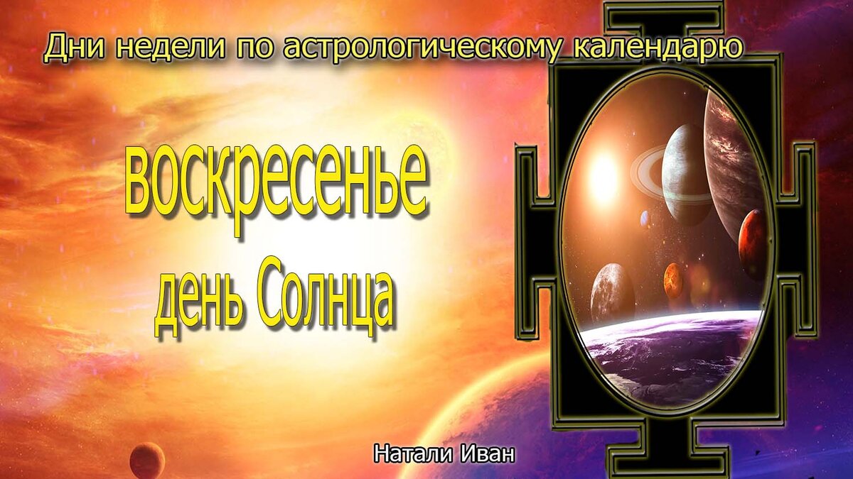 ВОСКРЕСЕНЬЕ День Солнца – дневное светило, цифра 1, начало всех начал, по астрологическому календарю первый день недели, когда все начинает разворачиваться. Энергии дня горячие, активные, организующие. Это легкий и радостный день, в нем много энергии, принятия и тепла. От того, как заложить принципы и смыслы … в этот день, так и пройдет вся неделя и по намерениям этого дня будет получен результат в конце недели. В этот день выстраиваются все ценности, намерения, цели, правила, законы, которым вы будете следовать всю неделю для получения конкретного результата, заданного вами в этот день. Этот день надо загрузить с самого утра. Как трудолюбивое солнце работает с самого утра и до самого заката. ДЕЛА ДНЯ - ВЫСТРОИТЬ ПРИОРИТЕТНЫЕ ЗАДАЧИ ДЛЯ ВСЕЙ НЕДЕЛИ С утра взять чистый лист бумаги и написать все цели на предстоящую неделю. Что вы хотели сделать, что прожить, кем стать, с кем общаться и что получить. Что на этой недели для вас должно случиться, произойти. Какие отношения ты хочешь н