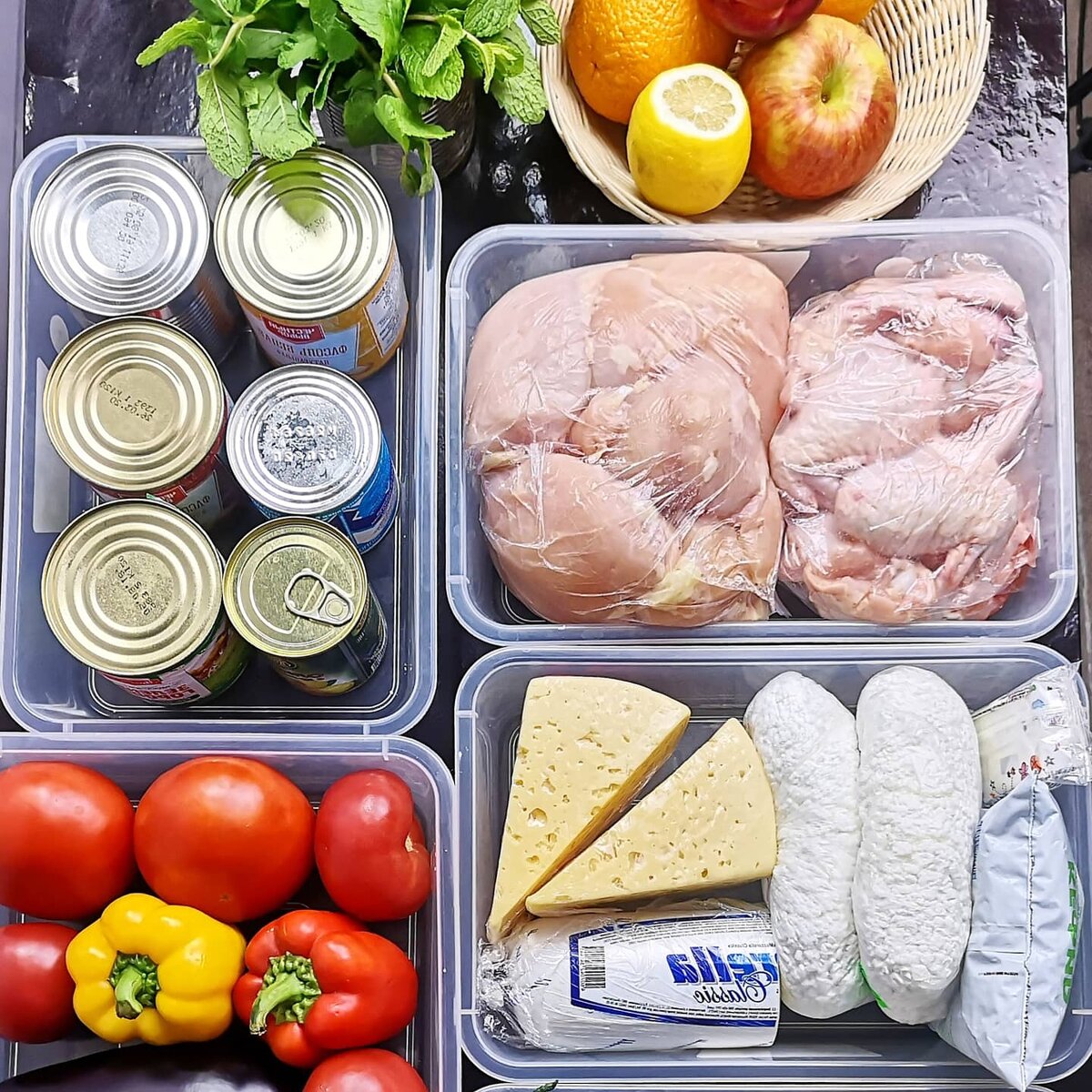☑️-лоток с банками (кукуруза, оливки, том. паста)