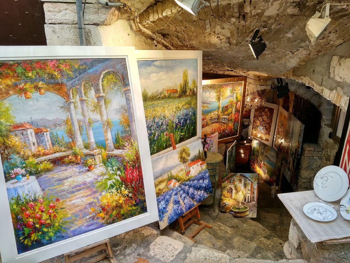 Недалеко от Ниццы есть небольшой городок - Сен-Поль-де-Ванс. Случайно прочитав о нём, я решил съездить туда на несколько часов. Оказалось, что город известен своими многочисленными художественными галереями. В попытке найти точку обзора, где бы я смог сделать фотографию, мне удалось обнаружить одну из картин нашего известного художника - Марка Шагала. Оказалось, что после эмиграции из России после Гражданской войны художник долго жил в этом городе и тут же был похоронен. Картина называется "Любовники над Сен-Полем".