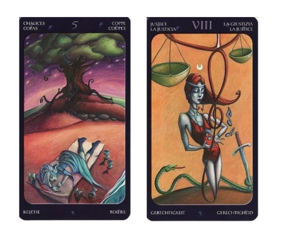 Добрый вечер, уважаемые подписчики канала и гости, заглянувшие ко мне на огонек. Рада видеть вас у себя. Сегодня я посмотрю женщину, которая решила принять участие в акции на определение основных черт личности с помощью карт Таро. Напоминаю - это индивидуальный расклад, направленный на просмотр одного конкретного человека. Но при желании еще 4 человека могут успеть принять участие в акции. Она бесплатная. Личность сейчас 5 чаш + Справедливость Вы очень справедливый человек, который борется за правду. У вас высокие идеалы и принципы. Мораль для вас не простой звук. Позвольте, я процитирую свои же слова про Справедливость, которые были написаны в анализе даты рождения. В некоторых колодах она носит название Гармония или Баланс. Согласитесь, крайне говорящие имена для карты. Справедливость - это трезвый строгий взгляд на мир, себя в нем, происходящие процессы. Она не терпит никакого обмана, самообмана, мошенничества, эмоциональной нестабильности. Она же указывает и на стремление к и