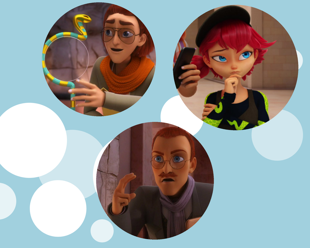 В сериале есть всего три семьи одноклассников супер героев, члены которые ещё не были аккуманизированы Бражником. Это сама Маринетт и её мама Сабин, мамы Альи и отец Аликс. Месье Алим Кюбдель. Рассмотрим сегодня семью Кюбдель. Отец Алим. Руководитель Египетского зала в Лувре. Брат Джалил. Историк древнего Египта. Увлечён Тутанхамоном. И расшифровал его заклинание по оживление Нефертити. Оба, отец и сын носят очки и шарфы. Отец нежно сиреневый, сын жёлтого оттенка. У Аликс на рукавах одежды рисунок змеи. По окрасу очень похож на зелёного полоза. На головном уборе у неё написана буква S. У всех трех один корень Али в именах. При этом мужские имена арабские (хотя во внешности нет арабской национальности). А имя Аликс европейское. Похожее сочетание национальностей как и у Маринетт. Имя Джалил арабское, в переводе означает выличественный, великий. Нумерологическое число имени 5. И это соответствует количеству обликов Джалила в виде аккуманизированного злодея Фараона. В этом обли