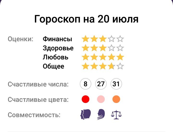 Общее Сегодняшний день полон положительных эмоций. Вас буду ждать приятные сюрпризы в различных местах. Куда бы вы ни пошли, и какие дела на сегодня не запланировали, вам будет сопутствовать удача. Поможет общение с людьми, которым вы давно уже доверяете. Они в очередной раз помогут вам решить определенные проблемы, поделятся с вами важной информации. Сегодня вы можете узнать что-то о близких людях. Следует обдумать информацию, прежде чем обсуждать ее. Сделайте правильные выводы, и даже если вы поменяете отношение к человеку, оно должно быть правильным. Вы должны быть уверены, что информация, которая вам поступает, не является обманом. Любовь Сегодня все пространство вокруг вас будет наполнено флюидами страсти. Влюбленным захочется провести этот день вместе. Ваш партнер может назначить свидание в неожиданном месте, соглашайтесь, вас ждут незабываемые впечатления. Одиноким людям в поисках своей второй половинки звезды рекомендуют сегодня отправиться в музей, на выставку. Не забывайте