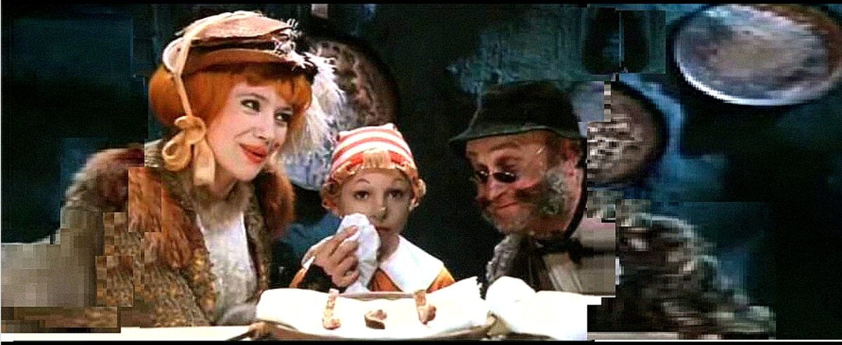 На что глядя в детстве, мы меньше всего обращаем внимание, в этом месте из приключения Буратино? Что сама Лиса не ест, не употребляет в пищу ни крошки хлеба. Обильно обедает Кот Базилио. Лиса же поет и танцует, совершая некий ритуал, таинственный обряд. Почему Лиса не обедает? Возможно, потому , что бережет фигуру, или потому, что ей , как женщине неудобно есть при ребенке , который есть не