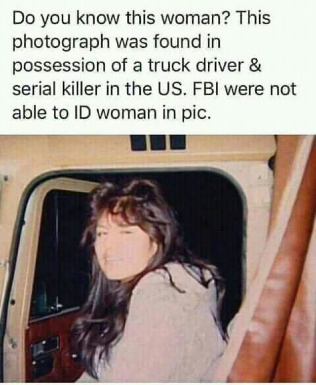 В 1985 году девушка по имени Памела Милликен (22 лет) решила навестить своего брата, живущего в 1000 км от нее. Добираться она решила автостопом. На выезде из города Реджайна она тормознула грузовик, и водитель согласился ее подвезти. Но прежде чем поехать, водитель сфотографировал ее в кабине своей машины - как он пояснил, это на тот случай, если она что-нибудь украдет у него. По фото он бы ее и нашел. Они проехали вместе более 350 км по все стране, и девушка попрощалась с ним в городе Брэндоне. Водитель предлагал ей доехать с ним до Флориды, но девушка отказалась, и шофер с ней простился. Фотография Памелы Милликен в кабине грузовика неожиданно была опубликована в статье GQ в 2012 году. Автор статьи написал, что эта фотография была обнаружена в квартире серийного убийцы Роберта Бена Роудса, и на ней изображена потенциальная жертва маньяка, личность которой полицейские не могут установить. В 2015 году уже 52-летняя Памела Милликен случайно наткнулась на фейсбуке на эту статью и узнала
