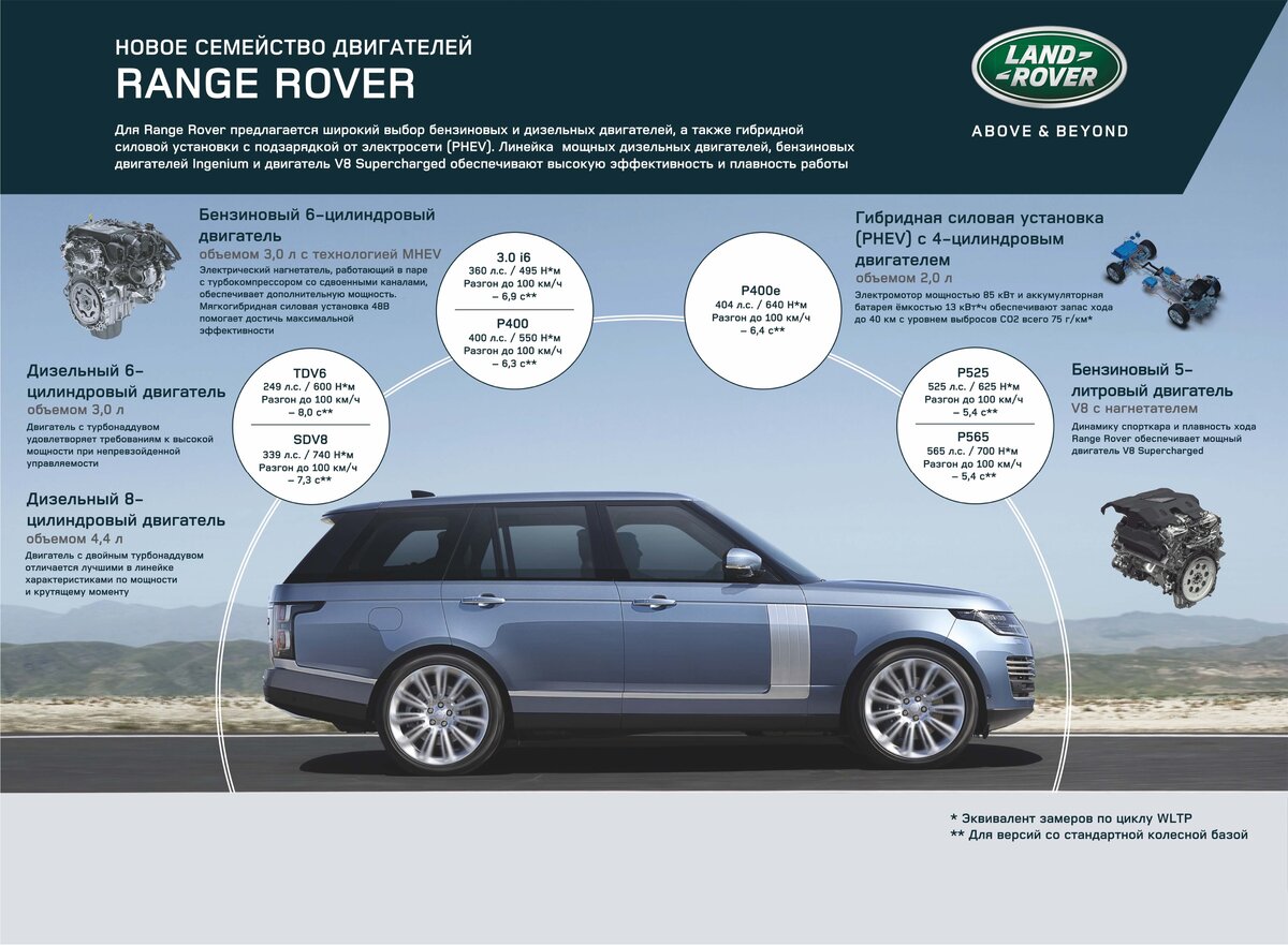 В линейку двигателей Range Rover, представленных на российском рынке, входят: