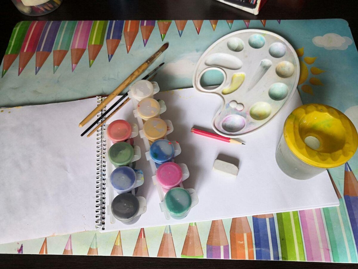 - краски(белая, голубая(синяя), зеленая, оранжевая, желтая, алая, коричневая)