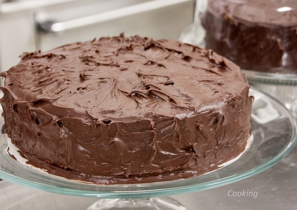 Вода - 1 стакан Разогреваем духовку до 180 градусов. Смазываем форму маслом. Смешиваем все сухие ингредиенты. В небольшой чашке размешиваем уксус, ванилин и растительное масло, добавляем к сухой смеси. Выливаем стакан воды в получившуюся массу, делаем ее однородной. Выпекаем тортик около 35 минут, готовность проверяем зубочисткой. Когда корж остынет, смазываем его своей любимой глазурью.