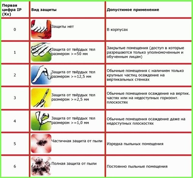 Степень защиты обозначается так называемым кодом IP, который включает в себя следующие элементы: