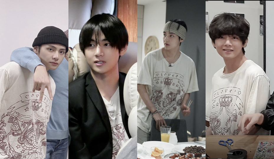 Мы снова возвращаемся к Вам с обзором выходов Тэхёна с ещё одной его любимой футболкой, как мы можем предположить. Ранее наш канал уже делал обзор с легендарной футболкой от французского бренда CELINE, в которой Тэхён появлялся около 10 раз. Если Вам интересно, в самом конце мы прикрепим ссылку на статью. На этот раз дела обстоят с белой футболкой от итальянского бренда GUCCI. Её стоимость составляет примерно 30 тыс. рублей Точно мы не можем знать, но возможно, что первое появление Тэхёна в этой футболке было 16 сентября 2019 года в аэропорту, когда BTS направлялись на съёмки 4 сезона "Бон Вояж" ("BTS BON VOYAGE"). Вот и видео с того дня: Также были выставлены фото в Facebook со съёмок шоу. Тэхён появляется в этой футболке в 1,6 и 8 сериях. Нужно отметить, что фото стали появляться в социальной сети только с 18 ноября 2019 года. Далее 23 сентября 2019 года Тэхён выкладывает фото в Твиттер, где он также одет в эту футболку. Последнее фото это подтверждает. Фото также сделаны во время