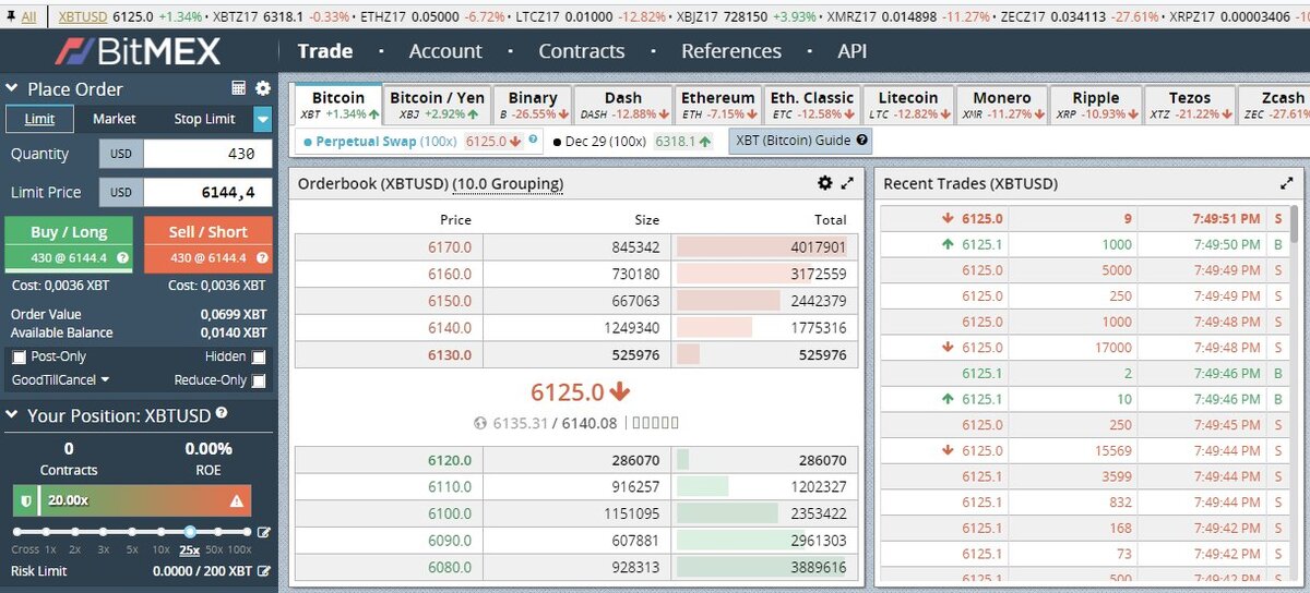 Вместо привычных биткоинов и альткоинов на битмексе контракты.