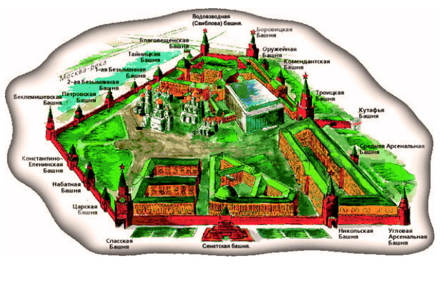 Москворецкая (Беклемишевская) кремлевская башня. Второе название связано с фамилией домовладельца – Беклемишев, чей двор стоял там некогда по-соседству. История обороны Кремля от неприятелей повествует, что по большей части наступление врагов на кремлевские стены проходило со стороны Москвы-реки, т.ч. Москворецкая башня находилась в самом эпицентре боевых событий. Вот почему она выглядит так грозно и неприступно, что складывается и из-за устройства в ней большого количества узких бойниц.
