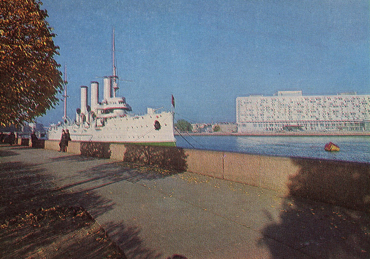 Вечером 25 октября крейсер дал свой знаменитый залп по Зимнему дворцу, который послужил сигналом к началу штурма императорской резиденции. Очень многие считают, что этот выстрел крейсер "Аврора" сделал с того места, где сейчас и находится, т. е. с Петроградской набережной. Это не так, в тот момент крейсер был пришвартован у Английской набережной, рядом с особняком Румянцева.