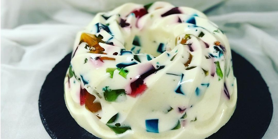 Этот торт пользуется большой популярностью у нас в семье, и поэтому я хочу поделиться этим рецептом с вами. Наверное многие после застолья не "доживают" до сладкого. С этим десертом так не получится. Так как он почти некалорийный и очень легкий в приготовлении. ИНГРИДИЕНТЫ. ПОДГОТОВКА. Заранее готовим желе. Желательно за сутки, что бы оно хорошо застыло. Не крутым кипятком заливаем в разных емкостях сухую смесь и хорошо перемешиваем, что бы желирующие вещества не осели на дно. Отправляем в холодильник и после того как он застыл нарезаем на квадраты. У нас должно получится два разных по цвету желе разрезанные на квадратики. Обычный желатин также замачиваем до полного растворения. Фрукты нарезаем дольками или кружочками. По желанию. Печенье, лучше конечно брать без начинки перебиваем миксером или на комбайне в мелкую крошку. Это будет наша основа. Сметану взбиваем с сахаром и в конце добавляем обычный растопленный желатин. Этот процесс нужно делать в самом конце, так как смет
