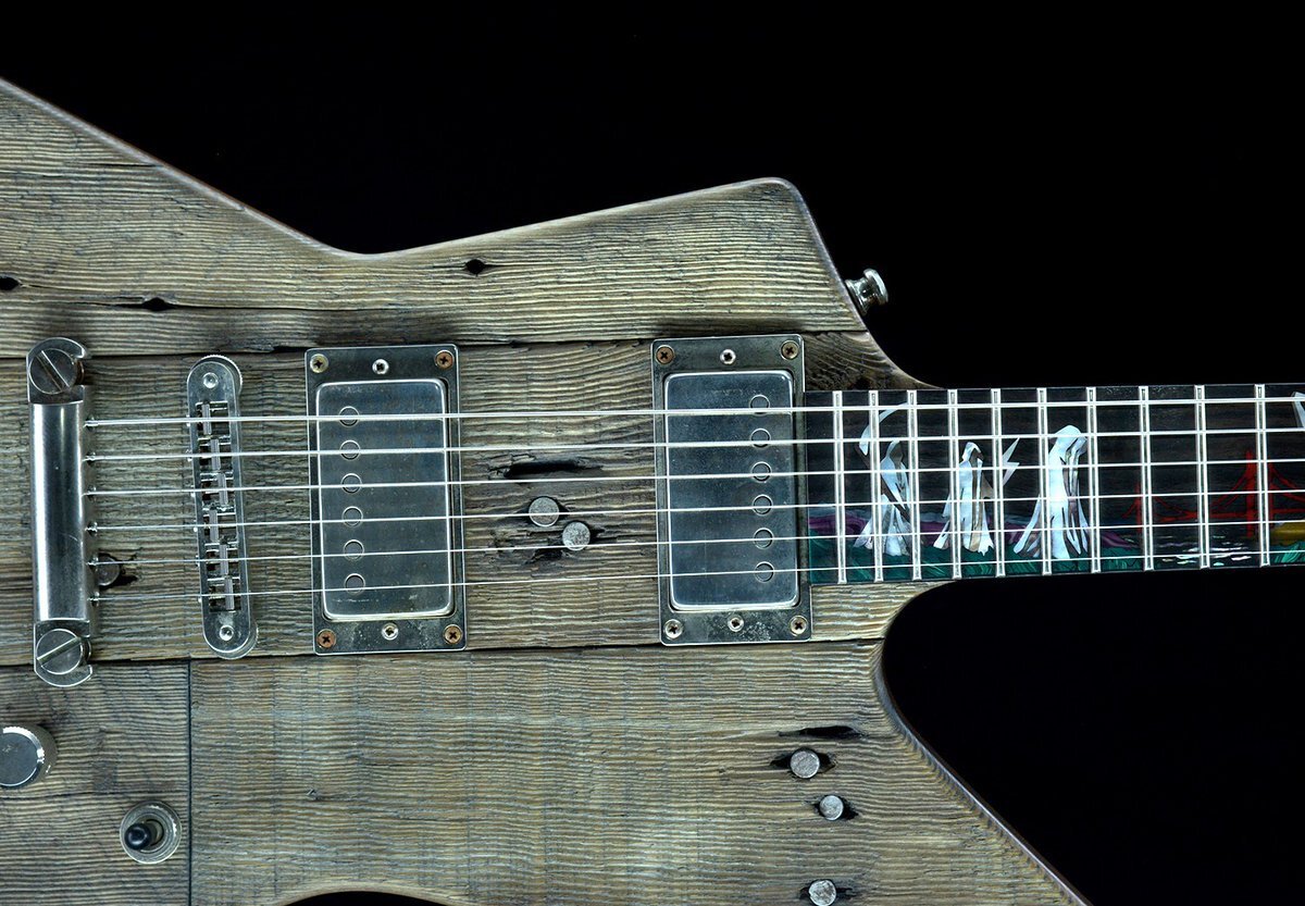Лицевая часть корпуса гитары выполнена из тех самых, знаменитых досок. Как уверяет мастер, после обработки материала, получить занозу при использовании инструмента невозможно, но оцарапаться о шляпки гвоздей- вполне реально. Материал лицевой части корпуса гитары обработан таким образом, что сохранена полностью фактура дерева, что по словам самого Хэтфилда, вызывает непередаваемые тактильные ощущения.
