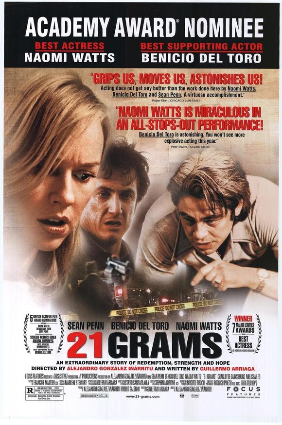 «21 грамм» - это история о надежде и человечности, жизнелюбии и выживании. Независимо от того, боитесь вы смерти или нет, она приходит, и в этот момент ваше тело становится на 21 грамм легче. Быть может, это вес человеческой души?