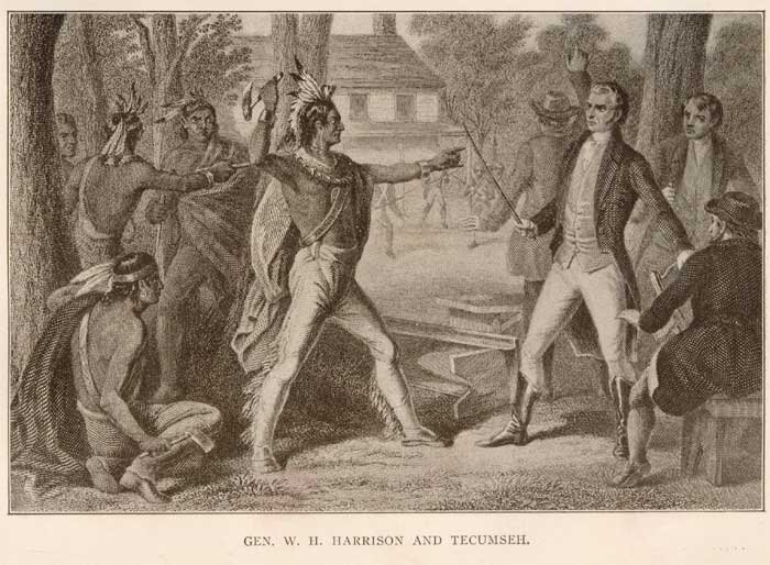 Легендарный вождь Текумсе пытался противостоять экспансии европейцев. Для этого он хотел объединить разные индейские племена в борьбе за свои исконные территории. Вместе с ним войну против белых вел его родной брат Тенскватава. Текумсе известен как человек беспримерной храбрости. Он принимал участие в Гражданской войне 1812-го. Воевал на стороне британцев против американцев.