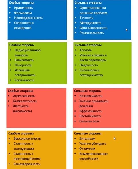 доминировать. Слабые и сильные стороны наглядно ниже в фотографии. Кстати, я красный) А Вы?