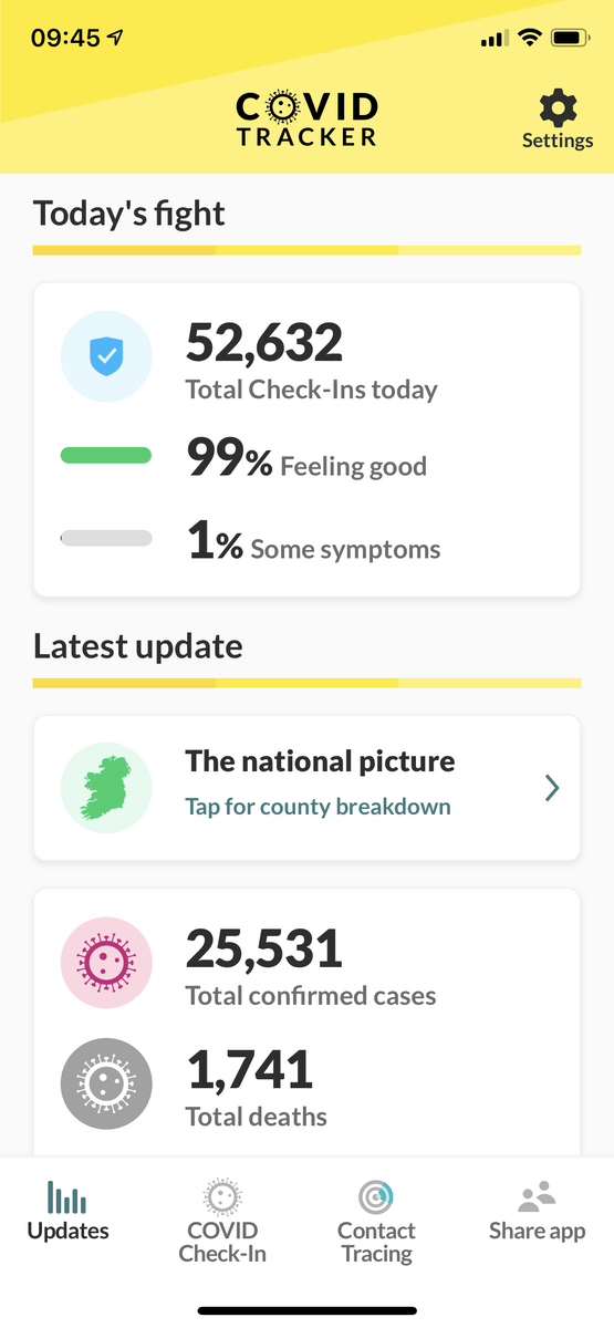 А вот как выглядит ирландское приложение “COVID-19 Tracker”: