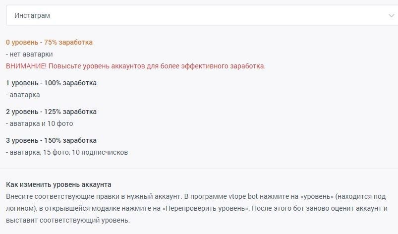 Аккаунты бывают разного качества и Vto.pe разделает их на несколько уровней: