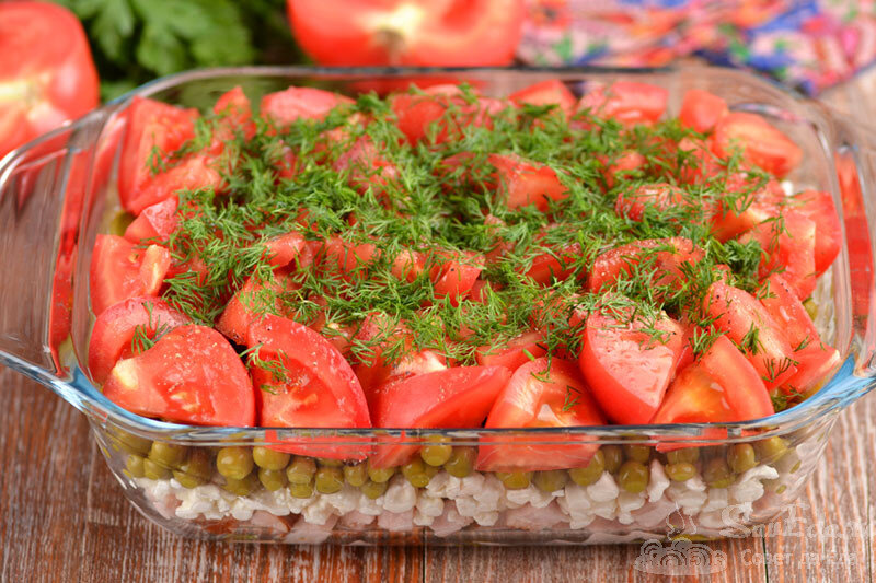 Этот салат можно собирать слоями или просто все продукты перемешивать, на вкус это не влияет. В качестве мясной основы можно использовать ветчину, вареное или копченое мясо. Творог добавляет салату изюминку, интересный вкус и делает его более сытным. За счет помидоров салат получается сочным. Все ингредиенты отлично сочетаются между собой и в итоге получается оригинальны и очень вкусный салат. Готовлю его всегда без майонеза. Порции 6 Время приготовления 5 минут Ингредиенты Инструкции 1. В качестве мясной основы можно брать любую ветчину, копченое или вареное мясо по вкусу. Сегодня готовлю салат с копченым свиным карбонадом. Нарезаем его не очень мелкими кубиками и выкладываем на дно салатника. 2. Для приготовления подходит именно зерненый творог. Выкладываем его из упаковки и распределяем ровным слоем. 3. Зерненый творог очень нежный, имеет сливочный, немного соленый вкус и отлично подходит для салатов. Поливаем его сверху оливковым маслом (1 ст. л.) и по жел