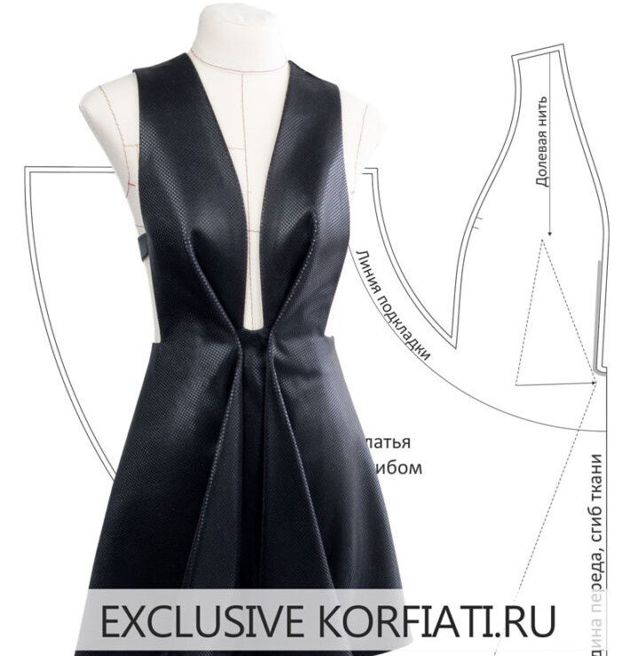 В этом уроке хотим поделиться с вами изящной дизайнерской идеей моделирования, которая, наверняка привлечет внимание большинства мастеров. Речь пойдете о платье с открытой линией плеч и глубоким декольте. Основной секрет этой модели заключается в фактурных складках, плавно перетекающих от лифа к юбке. С помощью такого элегантного приема формируется четко выраженный силуэт фигуры «песочные часы», а клешеная юбка кроя полу-солнце еще больше усиливает этот эффект. Выкройка платья с глубоким вырезом — в этом уроке. Чтобы конструкция надежно держалась на корпусе, средняя часть лифа фиксируется при помощи специальных косточек V-образной формы, но для еще большей надежности можно при